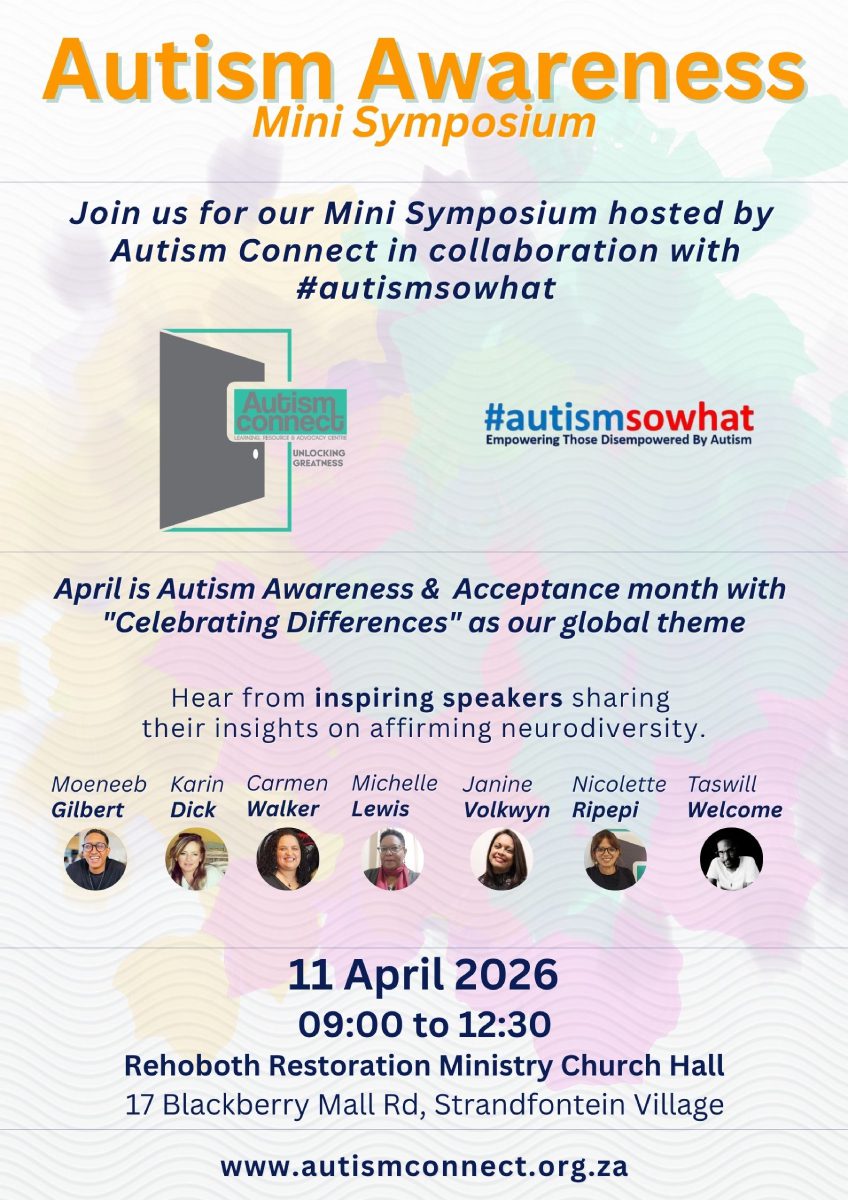 NEWS & EVENTS NEWS & EVENTS NEWS Autism Connect in Die Tygerburger • 29 August, 2025 • news Autism Connect featured on EWN • 11 August, 2025 • news Autism Connect featured on IOL • 11 August, 2025 • news Autism Connect featured in the Plainsman • 11 August, 2025 • news DATES TO DIARISE DATES TO DIARISE 11 April 2026Autism Awareness and Acceptance Month Mini Symposium 25 April 2026Autism Connect Skills and Coaching Centre Art Exhibition